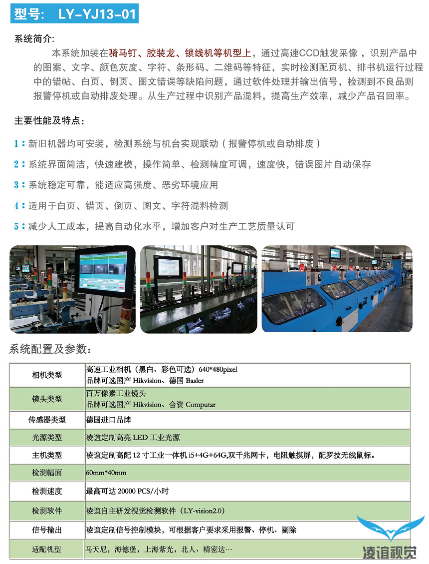 2、騎訂龍檢測系統( 白頁檢測 混料檢測 錯頁檢測 錯帖檢測) ;