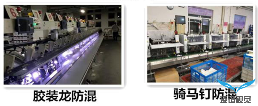 圖文防混料放錯頁檢測系統是加裝在客戶騎馬釘、膠裝機機臺上,生產時客戶可以通過CCD實時識別產品是否混料,通過軟件處理分析發送信號,處理不良產品,機臺可通過停機或者直接剔除排廢方式,防止白頁、錯頁、倒頁、圖文等缺陷問題出現,從源頭上杜絕產品混料,提高生產效率,盡可能減少產品召回率。